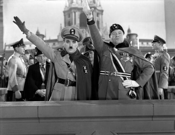 Charlie Chaplin girò il film “Il grande dittatore” nel 1940, per l’attore si trattava del primo film in cui aveva un ruolo con dei dialoghi. Il film prendeva chiaramente in giro Hitler e Mussolini, in particolare il leader tedesco era ritratto con un pazzo isterico urlante, pericoloso e fuori controllo. Per questo film Chaplin finì nella lista nera di Hitler.